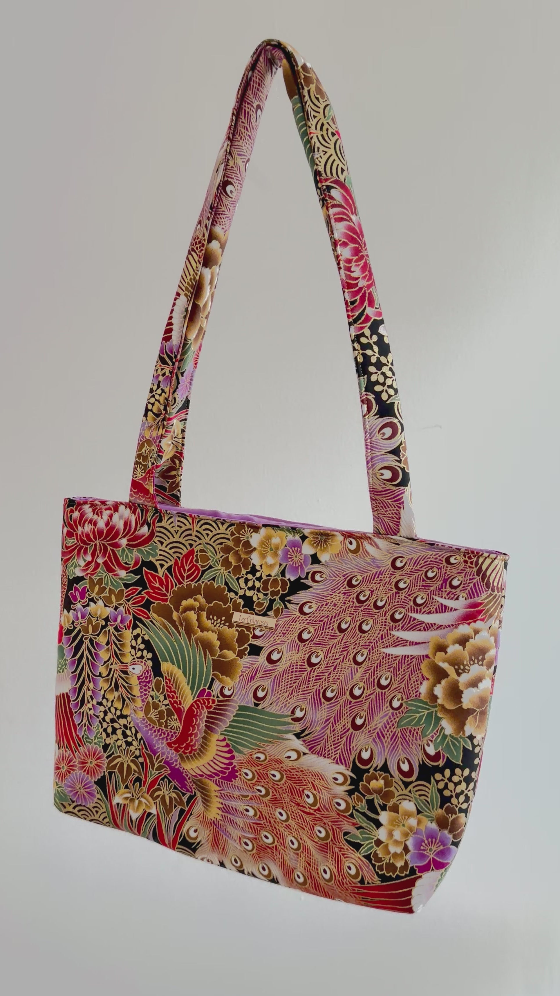 Un tissu japonais lumineux, orné de motifs de paon et rehaussé de touches dorées : raffiné, élégant et plein de caractère.